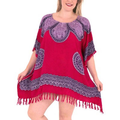 HAPPY BAY Women's Summer Vacation Beachwear Oversized Swim Suit Loose Holiday Bathing Suit Cover Ups for Women 1X-2X Pink Tie Dye Design