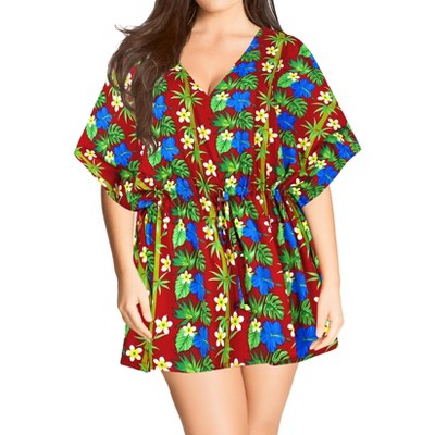 HAPPY BAY Women's Beachwear Summer Swim Beach Dress Cover Ups for Swimwear Women Wear Swimsuit Coverups for Women Cover-Up for Women 3X-4X Red,Floral