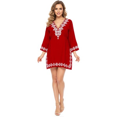 LA LEELA Womens Summer Holiday Mini Beachwear Bathing Suit Short Beach Dress Bikini Swimsuit Cover ups for Women M-L Red, Solid
