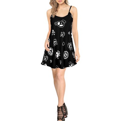 LA LEELA Women's Vacay Beachwear Pirates Pirate Sundress Mini Dress Beach Spaghetti Strap Sundresses for Women 10-12 Skull Crossbones, Blood Red
