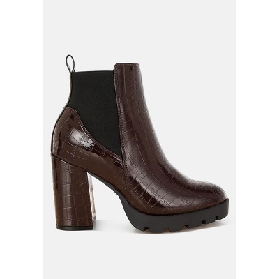 Journee Collection Women's Heddy Back Heel Zip Stacked Heel Booties