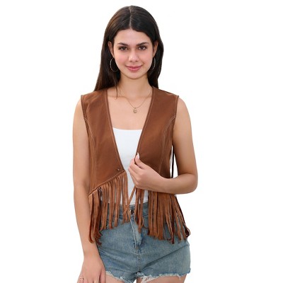 Women's Sleeveless Tassel Western Vest Cowboy Button Crop Outwear Vests