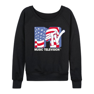 Women's - MTV - Lightweight French Terry Wide Neck Long Sleeve Graphic Shirt