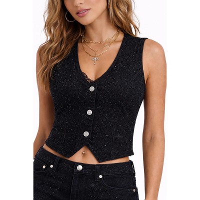 Forever 21 WGA STRETCH DENIM VEST WITH RHINESTONE FRONT