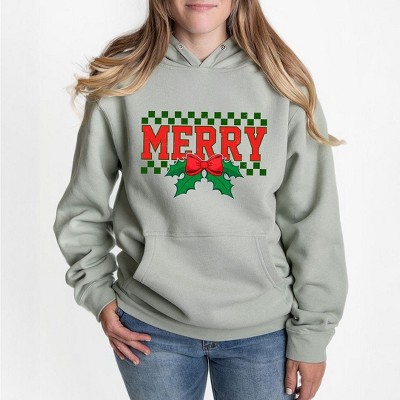 Simply Sage Market Women's Graphic Hoodie Merry Checkered Mistletoe