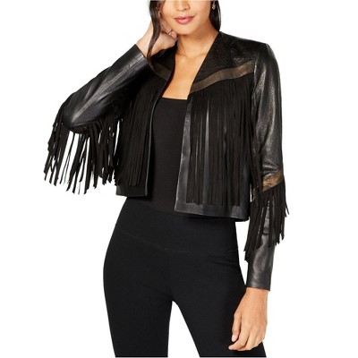Rachel Zoe Womens Fringe-Trim Leather Jacket