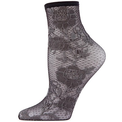 Natori Chantilly Women's Sheer Shortie Socks Black-Gray One Size