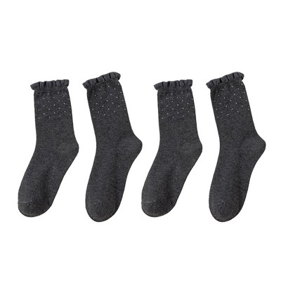 Anna-Kaci Women's 4 Pairs Knit Socks with Polka Dot Design Ruffle Edge Ribbed Cuffs Soft Stretch Fabric