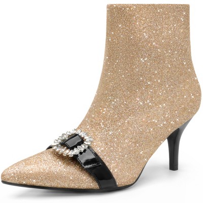 Perphy Women's Rhinestones Pointed Toe Stiletto Heel Glitter Ankle Booties
