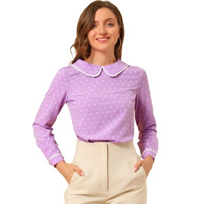 Allegra K Women's Peter Pan Collar Blouse Long Sleeve Sweet Cute Heart Dots Printed Top