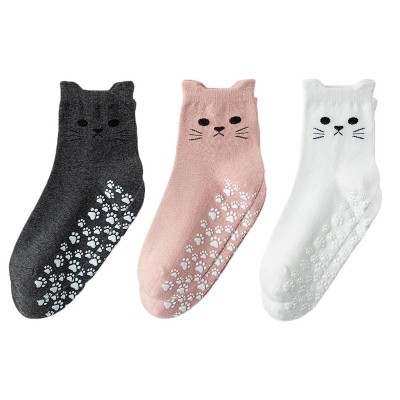 Anna-Kaci Women's Cat Face Grip Socks with Paw Print Anti-Slip Sole Soft Knit Ankle Socks for Home or Yoga 3-Pack