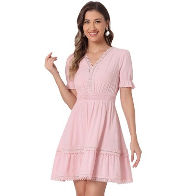 INSPIRE CHIC Women's Boho Square Neck Ruffle Trim Flowy Smocked Midi Sundresses