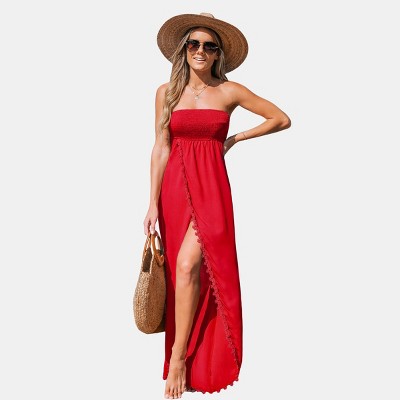Women's Chic Strapless Maxi Dress with Lace Trim - Cupshe