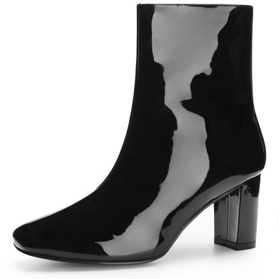 Allegra K Women's Square Toe Side Zip Chunky Heels Ankle Booties