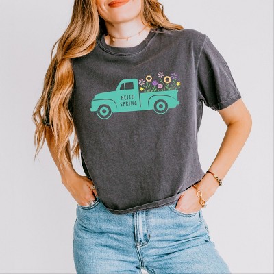 Simply Sage Market Women's Spring Truck Short Sleeve Relaxed Fit Cropped Tee