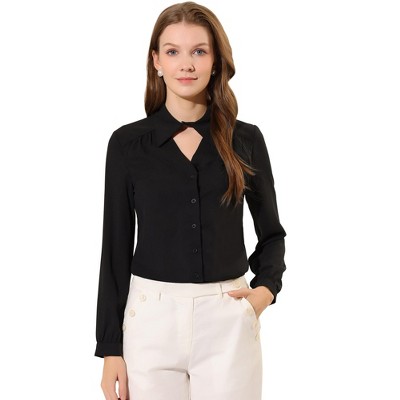 Allegra K Women's Elegant Bow Tie Neck Long Sleeve Work Shirt