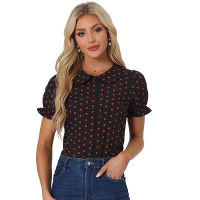 INSPIRE CHIC Women's Casual Bow Tie Pleated Neckline Swiss Dots Short Sleeve Blouse