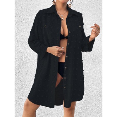INSPIRE CHIC Women's Half Placket Point Collar V Neck Long Sleeves Pocket Shirts