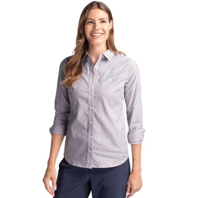 Seattle Mariners Cutter & Buck Stretch Oxford Stripe Womens Long Sleeve Dress Shirt