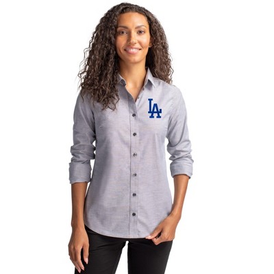 Los Angeles Dodgers Cutter & Buck Stretch Oxford Stripe Womens Long Sleeve Dress Shirt