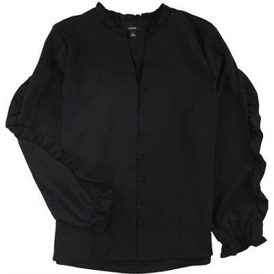 I.N.C International Concepts Womens Silk Ruffled Button Up Shirt