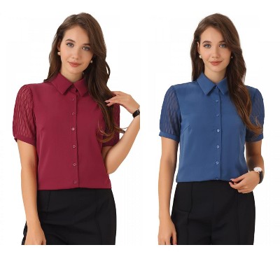 Allegra K Women's Swiss Dots Long Sleeve Button Front Ruffled Collar Shirt