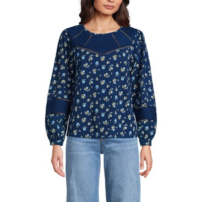Lands' End Women's Long Sleeve Slub Pintuck Top