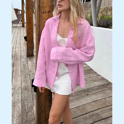 Women's Long Sleeve Casual Shirt Jacket Versatile Loose Fit Woven Blouse Top Lightweight Stand Collar