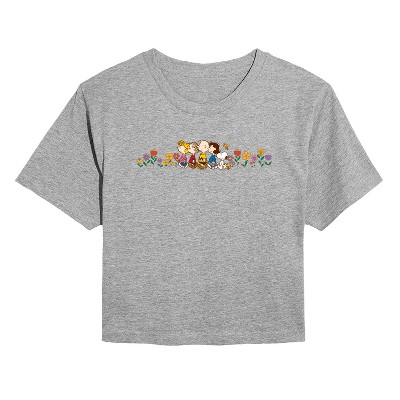 Women's - Peanuts - Charlie Brown & Friends Flowers Cropped Graphic T-Shirt