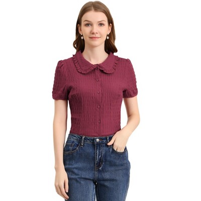 Allegra K Women's Sweet Ruffle Trim Peter Pan Collar Button-Down Shirt 2 Packs