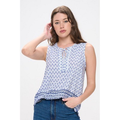 WEST K Women's Jovie Sleeveless Keyhole Tie Neck Shirttail Blouse