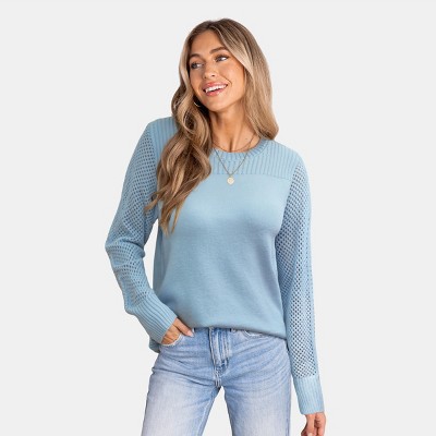 INSPIRE CHIC Women's Crew Neck Long Sleeve Hollow Work Sweater Top