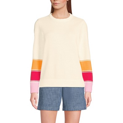 Lands' End Women's Cotton Drifter Crew Neck Sweater - Embroidered