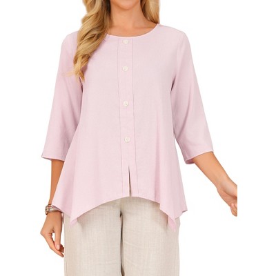 INSPIRE CHIC Women's Asymmetrical 3/4 Sleeve Round Neck Casual Button Loose Summer Tunic Blouse