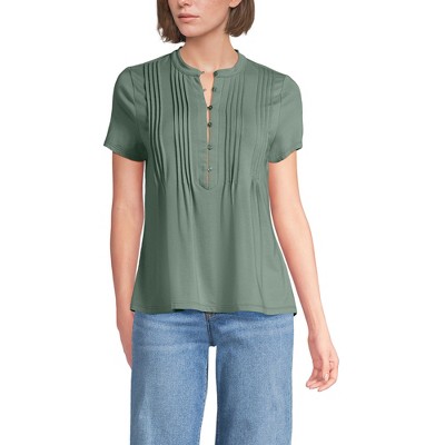 Lands' End Women's Short Sleeve Lightweight Jersey Button Pintuck Top
