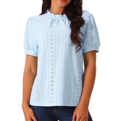 Seta T Women's Back Button Dressy Casual Ruffle Neck Summer Puff Sleeve Eyelet Tops
