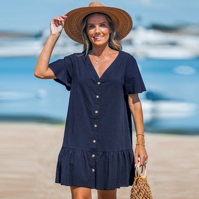 Women's Olive Green Button-Down Maxi Shirt Dress - Cupshe