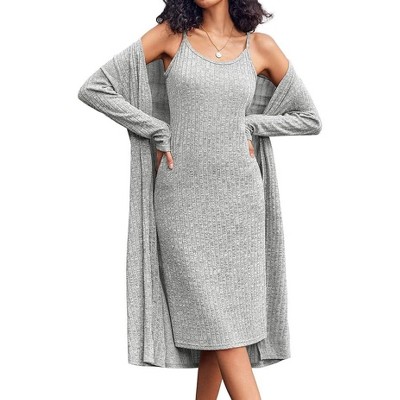 Ekouaer Womens Knit Robe Set 2 Piece Nightgown with Robes Long Sleeves Lounge Sets with Pockets
