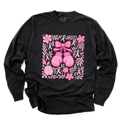 Breast Cancer Boxing Gloves - Women's Garment Dyed Long Sleeve Graphic T-Shirt