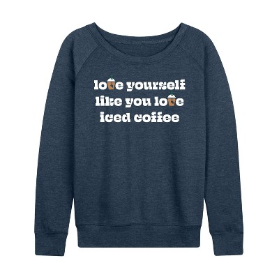 Women's - Instant Message - Coffee Lover Lightweight French Terry Wide Neck Long Sleeve Graphic Shirt