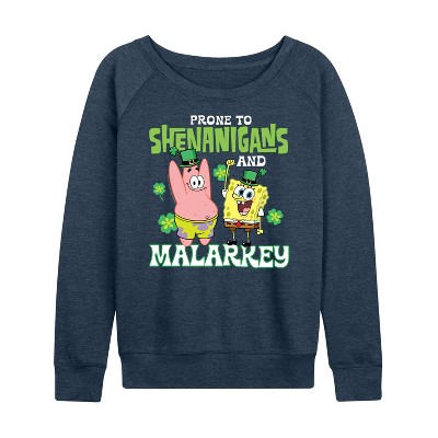 Women's - SpongeBob Squarepants - Prone To Shenanigans And Malarkey Lightweight French Terry Wide Neck Long Sleeve Graphic Shirt