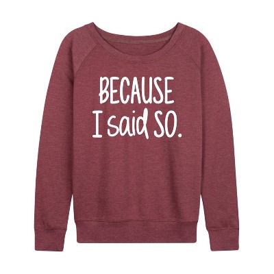 Women's - Instant Message - Because I Said So Lightweight French Terry Wide Neck Long Sleeve Graphic Shirt