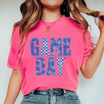 Game Day Blue Checkered - Womens Garment Dyed Tee