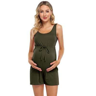 Clearlove Maternity Romper Shorts Women's Bodysuit Scoop Neck Sleeveless Tank Top High Waist Belt Jumpsuit for Pregnant