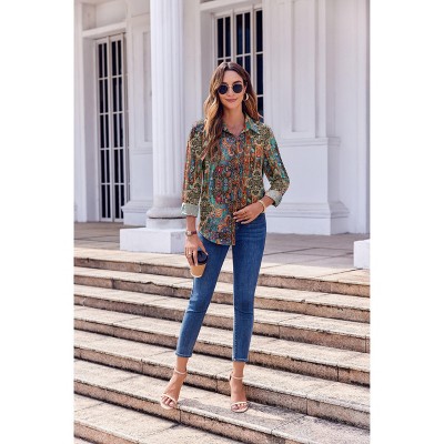 Zeagoo Button Down Shirts for Women Dressy Floral Printed Long Sleeve Blouse Business Casual Work Tops-MZ721-L