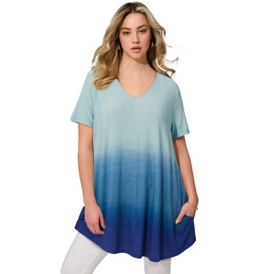 Roaman's Ultra Drape V Neck Short-Sleeve Swing Tunic