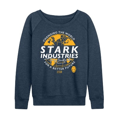 Women's - Marvel - Iron Man Stark Industries Lightweight French Terry Wide Neck Long Sleeve Graphic Shirt