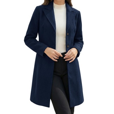 Allegra K Women's Turn Down Collar Flap Pocket Double Breasted Outwear Swing Winter Coat
