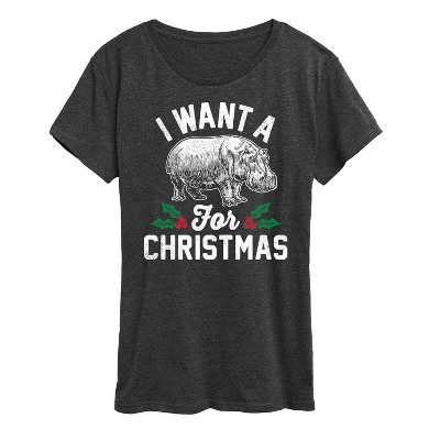 Women's - Instant Message - I Want A Hippopotamus For Christmas Short Sleeve Graphic T-Shirt