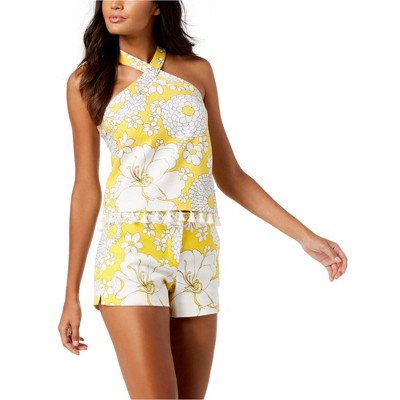 Trina Turk Womens Tassel-Trim Floral Crop Top Blouse
